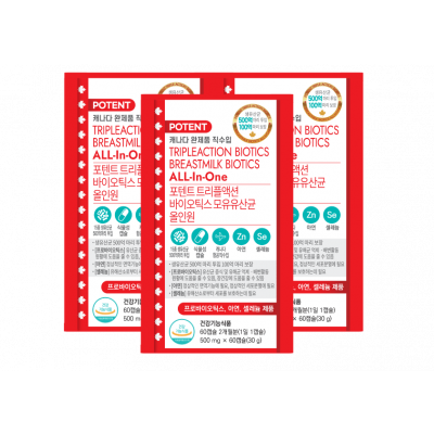 식품의 유형 건강기능식품 생산자 프라임헬스 소재지 캐나다 제조연월일 2024/02/16 유통기한 또는 품질유지기한 2027/02/28 포장단위별 용량(중량) 캡슐 총 30g(60캡슐 1캡슐당 500mg) 포장단위별 수량 6개월분 원재료명 및 함량 [원재료명] 락토바실러스 애시도필러스, 락토바실러스 람로서스, 락토바실러스 플 랜타룸, 락토바실러스 카제이, 락토바실 러스살리바리우스, 락토바실러스 루테리, 락토바실러스 헬베티쿠스, 락토바실러스 가세리, 락토바실러스 퍼맨텀, 락토바실러 스 파라카제이, 비피도박테리움 브레브, 비피도박테리움 애니멀스종 락티스, 비피 도박테리움 롱검, 비피도박테리움 비피덤, 스트렙토코쿠스 서모필루스, 산화아연, 아셀렌산나트륨, 프락토올리고당, 말토덱 스트린, 자일로올리고당, 갈락토올리고당, 리파아제, 프로테아제, 스테아린산마그네 슘, 이눌린, L-프롤린, 이산화규소(고결방 지제), 유산균배양분말(락토바실러스 불 가리쿠스,락토코커스 락티스) 영양정보 [영양정보] 1일 섭취량 당 함량 : 열량 0 kcal, 탄수 화물 0 g(0 %), 단백질 0g(0%), 지방 0 g (0 %), 나트륨 0 mg(0 %), 지표성분: 프로 바이오틱스 수 10,000,000,000 CFU, 아 연 2.8 mg(33 %), 셀레늄 16.5 ug(30 %) * )안의 수치는 1일 영양성분기준치에 대 한 비율임. 기능정보 [기능정보] [프로바이오틱스] 유산균 증식 및 유해균 억제에 도움을 줄 수 있음 배변활동 원활에 도움을 줄 수 있음 장건강에 도움을 줄 수 있음 [아연] 정상적인 면역기능에 필요 정상적인 세포분열에 필요 [셀레늄] 유해산소로부터 세포를 보호하는데 필요 섭취량, 섭취방법 및 섭취 시 주의사항 [섭취시 주의사항] (가) 질환이 있거나 의약품 섭취시 전문가와 상담하십시오 (나) 알레르기 체질 등은 개인에 따라 과민반응을 나타낼 수 있습니다 (다) 어린이가 함부로 섭취하지 않도록 일일섭취량을지도하십시오 (라) 이상사례 발생시 섭취를 중단하고 전문가와 상담하십시오 본 제품은 질병예방 및 치료룰 위한 의약품이 아닙니다. [섭취량 및 섭취방법] 1일 1회 1회 1캡슐을 물과 함께 섭취하십시오 질병의 예방 및 치료를 위한 의약품이 아니라는 내용의 표현 본 제품은 질병예방 및 치료룰 위한 의약품이 아닙니다. 유전자재조합식품에 해당하는 경우의 표시 상품페이지 참고 표시광고 사전심의필 상품페이지 참고 수입식품에 해당하는 경우 "건강기능식품에 관한 법률에 따른 수입신고를 필함"의 문구 건강기능식품에 관한 법률에 따른 수입신고를 필함 소비자상담 관련 전화번호 070-7797-0503 -