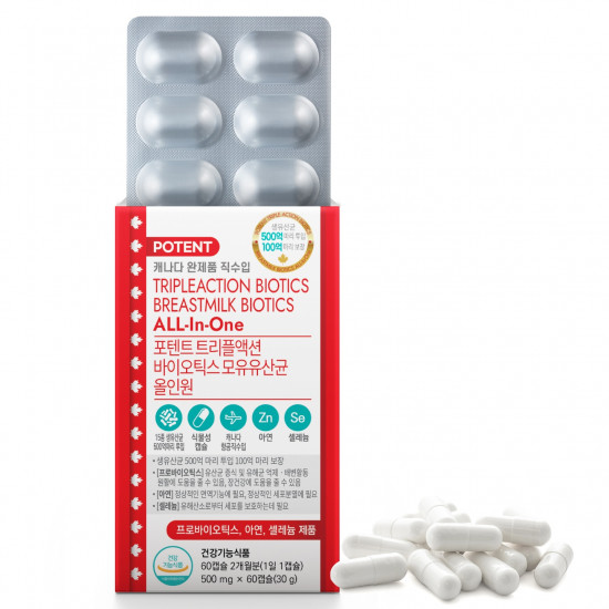 500억 장건강 모유생유산균/ 포텐트 트리플액션 바이오틱스 모유유산균 올인원(구포텐트 포스트바이오틱스 올인원)/ 프롤린 이눌린유산균, 면역유산균 아연, 셀레늄,좋아요별점5개